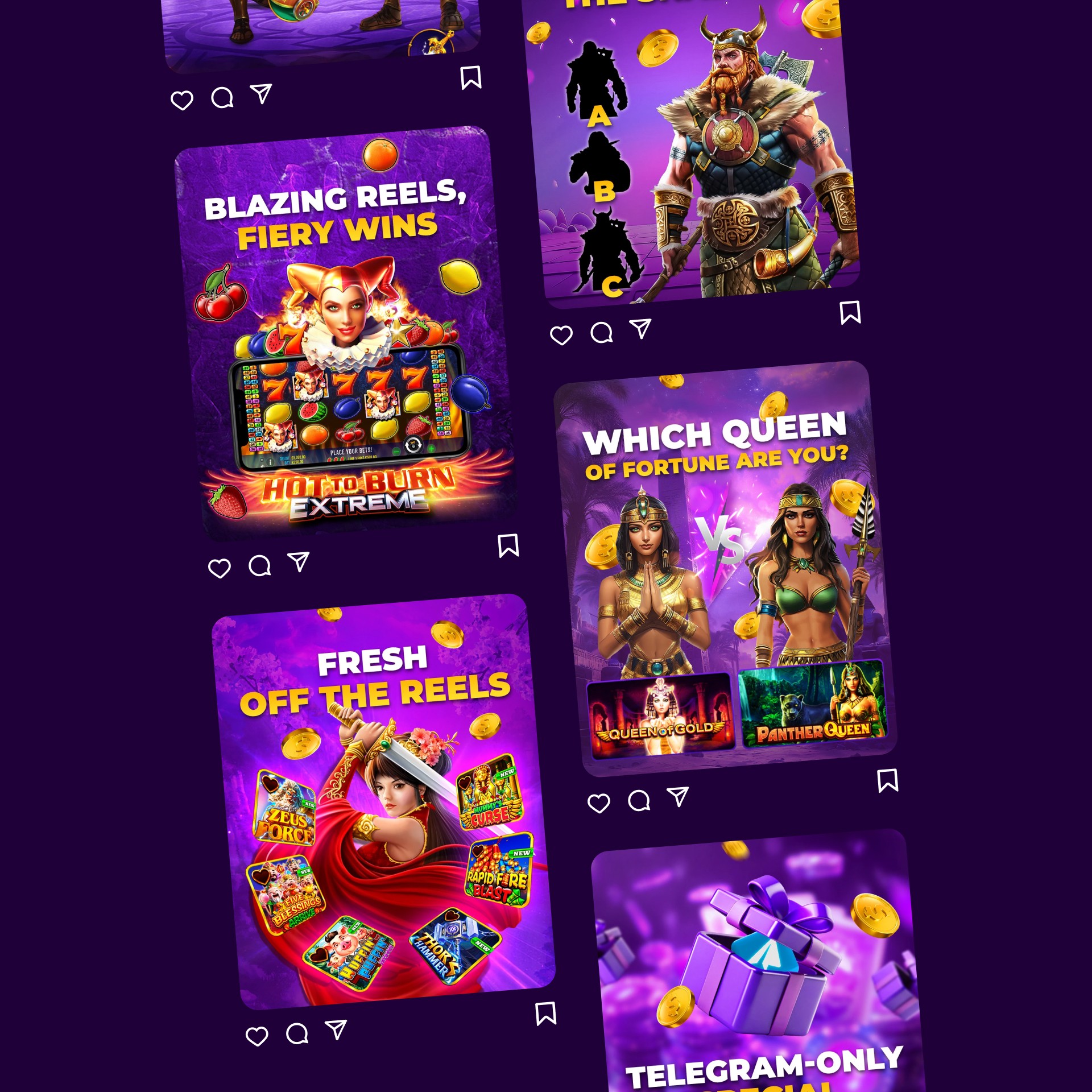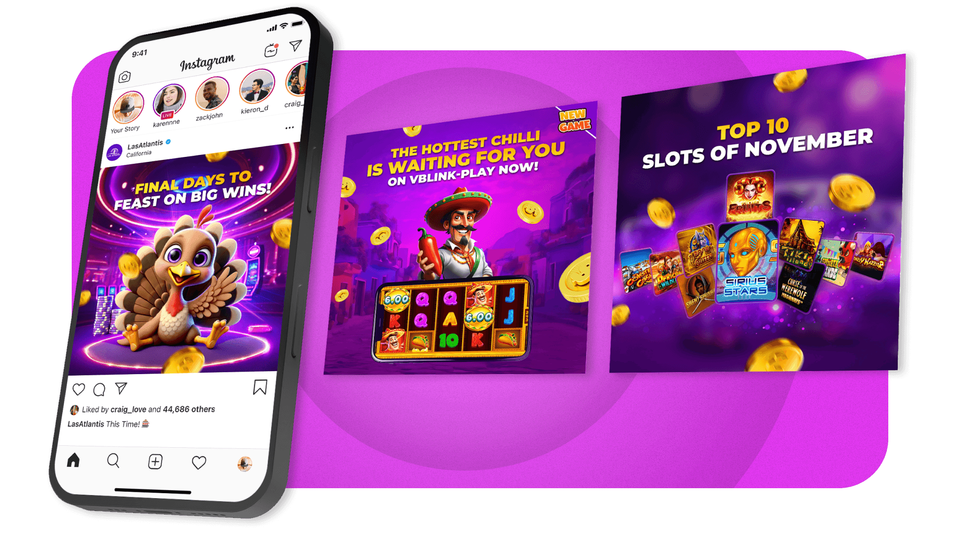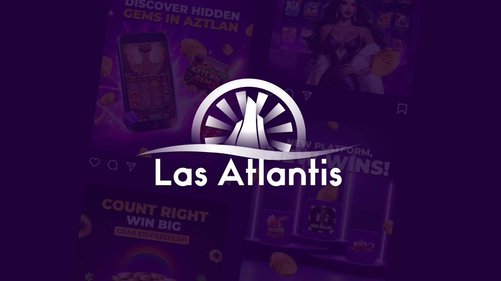 I worked on different social media posts for Las Atlantis: An online casino with a maximalist and strong graphic style.