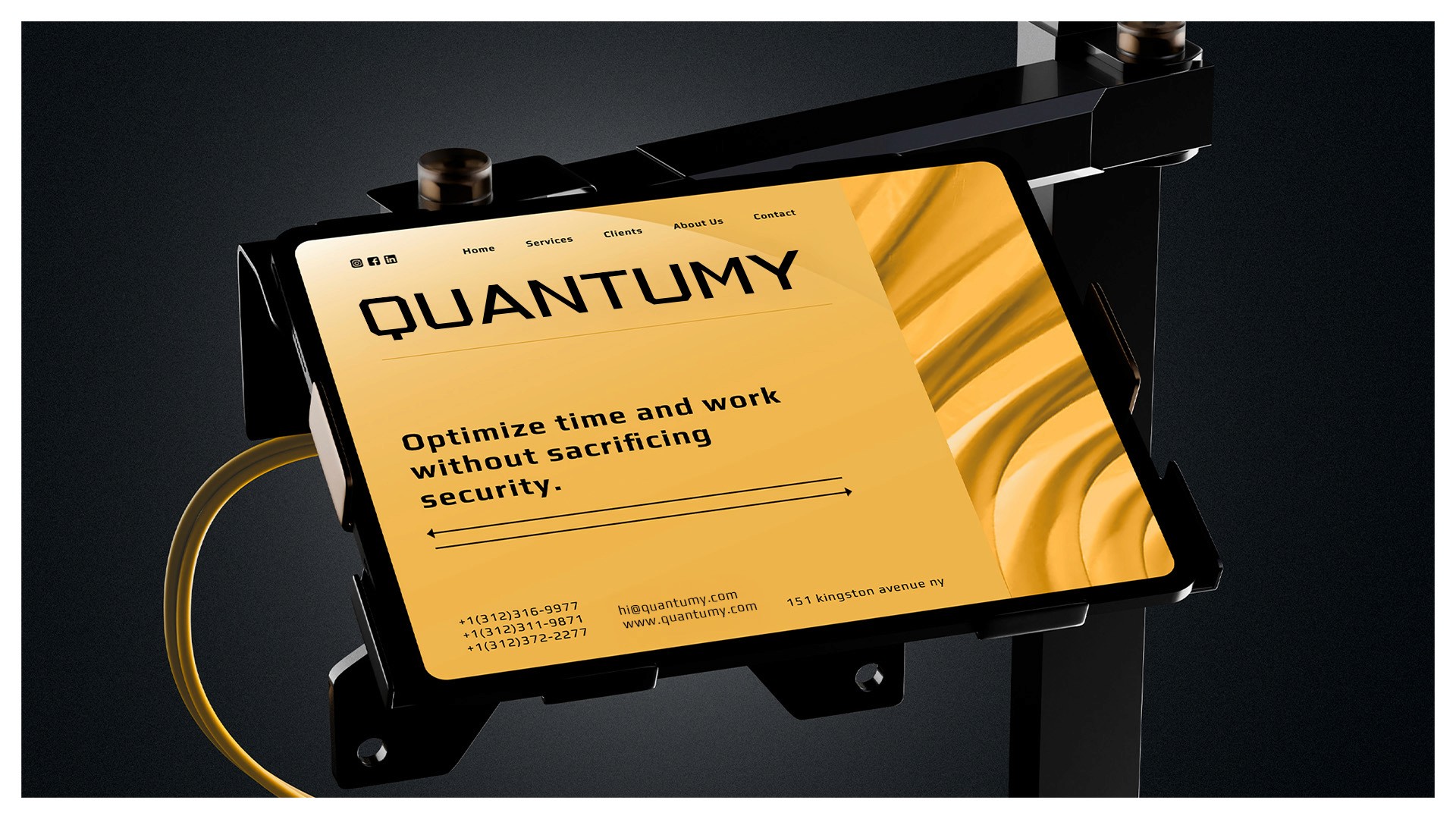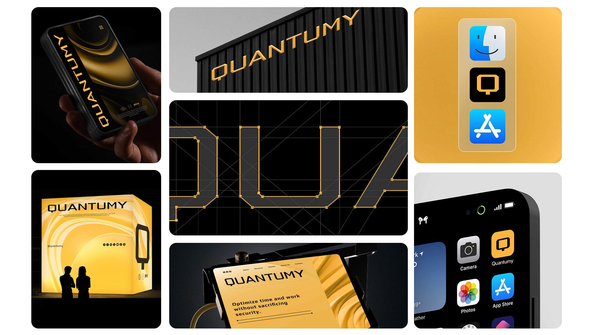 The development of Quantumy centered on the concept of "Optimal Shielding." Every touchpoint of the brand identity reflects a commitment to structural order and transparency, moving away from the "black box" approach of traditional IT services. By utilizing a high-contrast aesthetic—combining "Hunyadi Yellow" for alertness and "Night" for depth—the brand signals a state of constant, vigilant readiness, ensuring that clients can perceive the robustness of the systems protecting their most valuable digital assets.